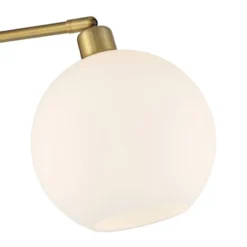 Possini Euro Design Luna Mid Century Desk Table Lamp 26 1/2″ High Brass Metal With USB Charging Port Opal Glass Shade For Bedroom Living Room Bedside