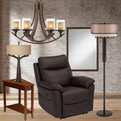 Possini Euro Design Metzeo Rectangular Vanity Wall Mirror Vintage Beveled Edge Oil Rubbed Bronze Metal Frame 26″ Wide For Bathroom Bedroom Living Room