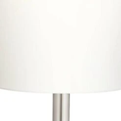 Brighten a dark room corner or add an eye-catching look to living room lighting areas with this modern design from the Possini Euro Design brand. The droplet lamp body is impressive with a brushed nickel finish and fluid Mid-Century modern lines. The striking drum shade looks crisp and clean and contributes to the vertical interest of this modern floor lamp design. A handy on-off foot switch offers easy operation and lighting control.