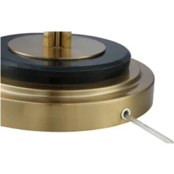 - Satin brass finish over metal construction. Black marble accent on the base.