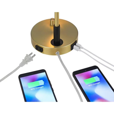 Possini Euro Design Possini Euro Kinzie Desk Lamp With Power Outlet And USB Ports Warm Gold