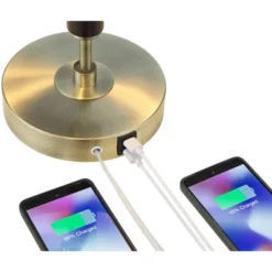 Possini Euro Design Possini Euro® Wyndham Desk Lamp With Glass Shade And Dual USB Ports