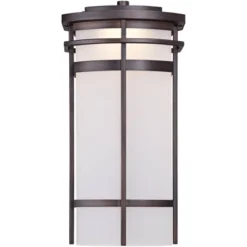 From the Theola collection by Possini Euro Design, this outdoor wall light offers a softened contemporary style for your home. The silhouette is a harmonious blend of gentle curves and clean, straight lines. A rich bronze finish decorates the steel frame, and the etched glass shade protects the LED bulb housed within.