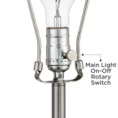 - On-off rotary switch on socket for main light. Separate on-off rocker switches for side lights on the base.
